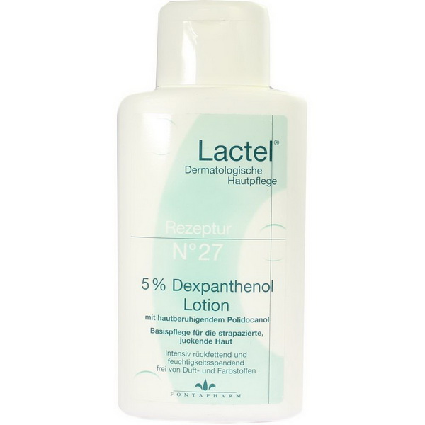 Lactel® N°27 Lotion mit Dexpanthenol und hautberuhigendem Polidocanol reguliert intensiv den Fett- und Feuchtigkeitshaushalt der Haut. Der Wirkstoff Dexpanthenol spielt eine wichtige Rolle bei der Hautregeneration. Er dringt schnell und tief in die Haut ein und regt dort die Stoffwechselprozesse der Zellerneuerung und des Lipidaufbaus an. So wird die natürliche Schutzbarriere der Haut wieder aufgebaut und gestärkt. Durch den Verzicht auf Duft- und Farbstoffe und die Verwendung sorgfältig nach dermatologischen Gesichtspunkten ausgewählter Inhaltsstoffe ist Lactel® N°27 besonders gut hautverträglich.