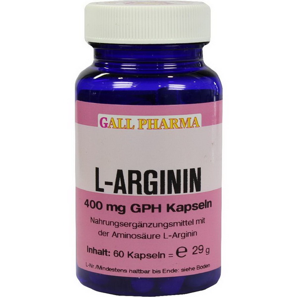 Arginin gehört zu den semi-essentiellen Aminosäuren und kommt vor allem in Nahrungsmitteln mit hohem Eiweißanteil vor. Bei individuellen besonderen Lebenssituationen kann es vorkommen, dass nicht alle Semi-essentielle Aminosäuren in optimaler Form hergestellt werden kann. Dies sind vor allem Belastungssituationen. Hier sollte sie dem Organismus gezielt mit der Nahrung oder mittels Nahrungsergänzung zugeführt werden. Arginin ist vorwiegend in Eiweiß, reichlich in Erdnussprotein (11 %) und in freier Form weit verbreitet in pflanzlichen Lebensmitteln enthalten. Sie ist Hauptbestandteil von Kollagen, Elastin, Hämoglobin, Insulin und Glucagon. L-Arginin Kapseln enthalten 400 mg Arginin in einer Hartgelatinekapsel. Große Mengen Arginin kommen in Käse, Eiern, Milch und besonders in Fleisch vor. Als semi-essentielle Aminosäure sollte sie unter gewissen Belastungssituationen, wie zum Beispiel beim Training oder unter Stress, vermehrt zugeführt werden. Arginin ist für den Stoffwechsel der Muskeln wichtig und besitzt in diesem Zusammenhang eine Schlüsselfunktion beim Ablagern, sowie beim Transport und Ausscheiden von Stickstoff. Kreatin, eine der energiereichen Verbindungen der Muskeln, wird aus Arginin hergestellt. Eine wichtige Rolle spielt Arginin auch im Leberstoffwechsel. Diese Aminosäure ist als NO-Lieferant zusammen mit L-Lysin entscheidend für die Lymphozyten-Proliferation. Somit hat Arginin eine stärkende Auswirkung auf die körpereigenen Abwehrkräfte und kann die Wundheilung günstig beeinflussen.