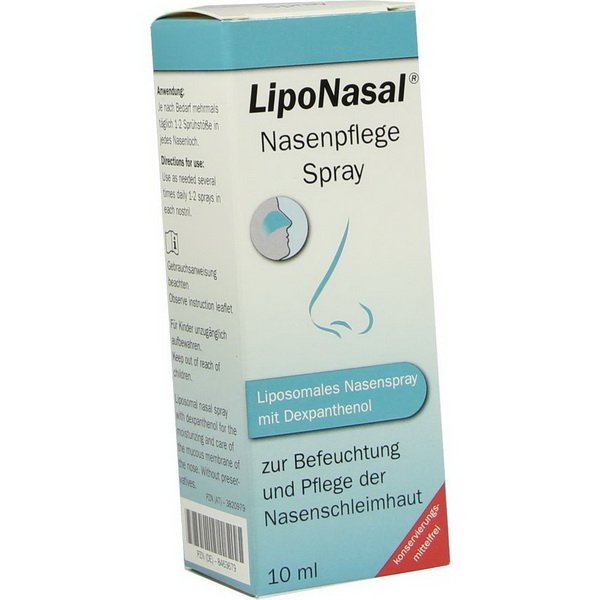 LipoNasal® Nasenpflege je nach Bedarf mehrmals täglich 1 – 2 Sprühstöße in jedes Nasenloch sprühen.