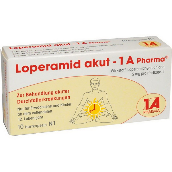 Anwendungsgebiet: Zur symptomatischen Behandlung von akuten Durchfällen für Erwachsene und Jugendliche ab 12 Jahren, sofern keine ursächliche Therapie zur Verfügung steht. Eine über 2 Tage hinausgehende Behandlung mit Loperamid darf nur unter ärztlicher Verordnung und Verlaufsbeobachtung erfolgen. Enthält Lactose.