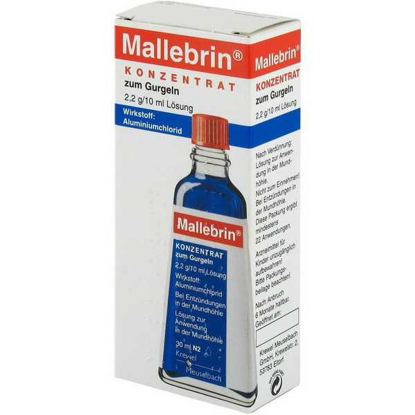 Mallebrin® Konzentrat zum Gurgeln ist ein traditionelles Arzneimittel bei Entzündungen in der Mundhöhle. Mallebrin® Konzentrat zum Gurgeln wird traditionell angewendet als mild wirkendes Arzneimittel bei leichten Entzündungen des Zahnfleisches und der Mundschleimhaut.