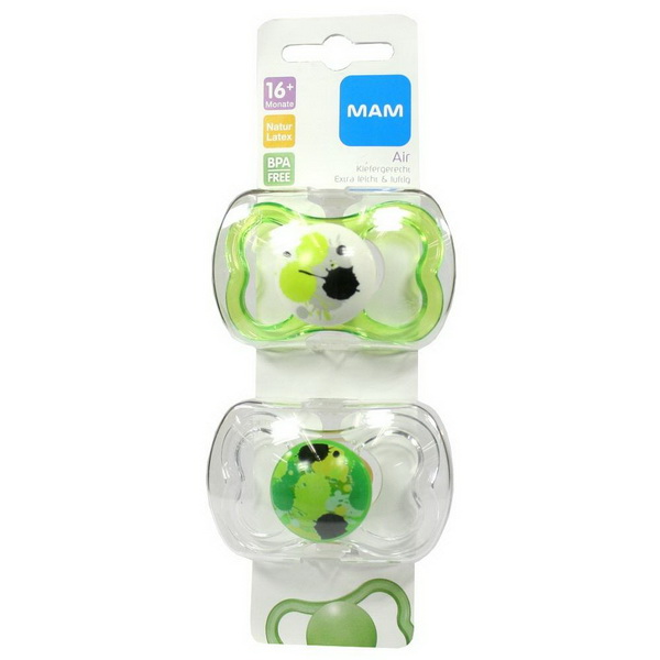 Der MAM Air ist durch sein prämiertes, extra-luftiges Schild-Design besonders gut für die Haut. Der kiefergerechte, symmetrische Sauger des MAM Air Latex ist aus Naturkautschuklatex. Und sein symmetrisches Schnullerschild ist immer richtig herum im Mund. Der Greifknopf ist immer gut im Griff und nie im Weg. Der MAM Air Latex 16+ Monate entspricht der Norm EN 1400 und ist selbstverständlich BPA-frei.