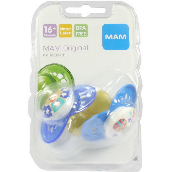 Der kiefergerechte, symmetrische Sauger des MAM Original Latex ist aus Naturkautschuklatex. Sein symmetrisches Schnullerschild ist immer richtig herum im Mund. Besonders gut für die Haut sind die großzügigen Luftlöcher, das abgerundete Schnullerschild und die Noppen auf der Schild-Innenseite. Der Greifknopf ist immer gut im Griff und nie im Weg. Und mit seinen regelmäßig wechselnden Farben und Designs bringt er Abwechslung in den Baby-Alltag. Der MAM Original Latex 16+ Monate entspricht der Norm EN 1400 und ist selbstverständlich BPA-frei.