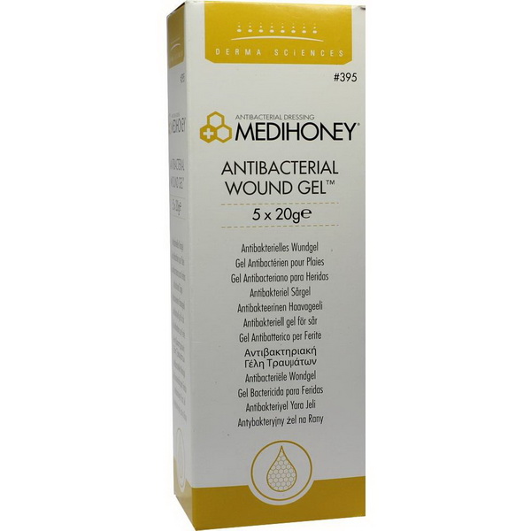 Medihoney™ Antibakterielles Wundgel ist ein Präparat für die topische Anwendung auf chronischen und akuten Wunden. Durch eine spezielle Formulatur wurden 80% Medihoney™ Antibakterieller Honig mit natürlichen Wachsen und Ölen kombiniert, um ein Gel mit hoher Viskosität für die leichte Applikation und guten Abspüleigenschaften beim Verbandwechsel zu erhalten.