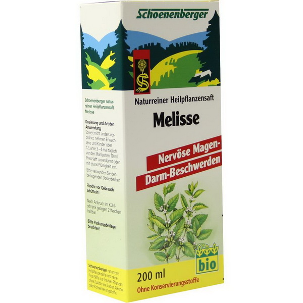Melisse eignet sich daher zur Therapie von funktionellen Magen-Darm-Beschwerden. Schoenenberger® Heilpflanzensäfte sind reine Press-Säfte aus frischen Pflanzen ohne Zusatz von Zucker, Alkohol, Konservierungsmitteln oder anderen, oft unerwünschten Stoffen.