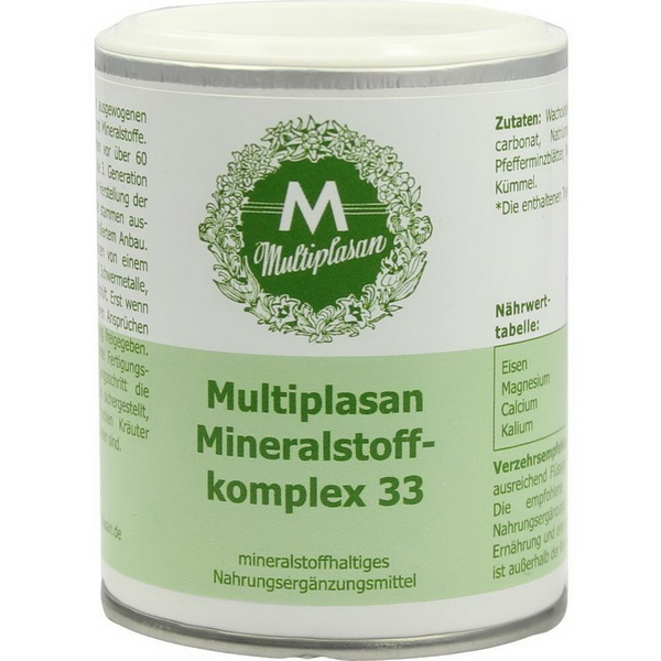 Multiplasan Mineralstoffkomplex 33 ist eine Mischung aus verschiedenen Kräuter, die durch Mineralsalze ergänzt werden. Wacholderbeeren und Brennessel enthalten große Mengen an Flavonoiden und Mineralstoffen. Das in den Kräutern enthaltene Kalium ist u.a. lebensnotwendig für die Nerven- und Muskelarbeit. Magnesium ist verantwortlich für zahlreiche Enzymreaktionen. Die enthaltenen Kräuter stammen ausschließlich aus Wildsammlungen oder kontrolliertem Anbau. Vor ihrer Verarbeitung werden die Pflanzen von einem anerkannten und unabhängigen Labor auf Schwermetalle, Herbizide, Pestizide und Radioaktivität überprüft.