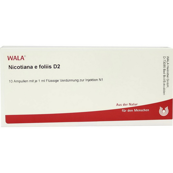 Flüssige Verdünnung zur Injektion: 1 ml enthält: Nicotiana tabacum e foliis ferm 33b Dil. D.. 1 ml (HAB, Vs. 33b)