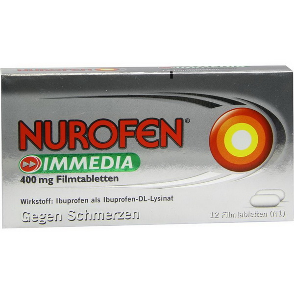 Für die besonders schnelle Schmerzlinderung bei Erwachsenen: NUROFEN® IMMEDIA 400 mg Filmtabletten. Es enthält 684 mg Ibuprofen-DL-Lysinat (entspr. 400 mg Ibuprofen). Der Wirkstoffbeschleuniger Lysinat sorgt für die besonders schnelle Schmerzlinderung.