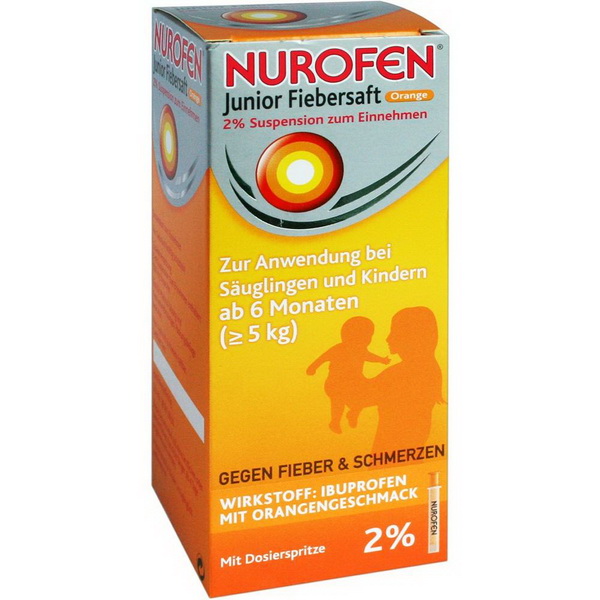 Nurofen® Junior Fiebersaft Erdbeer 2% (100ml) und Orange 2% (100ml/150ml) sind für Kinder ≥5kg Körpergewicht (ab 6 Monaten) geeignet. Die beigefügte Dosierspritze erleichtert die genaue und sichere Dosierung nach Alter und Gewicht Ihres Kindes. Außerdem ermöglicht sie bei kleinen Kindern die Applikation im Liegen. Alle Nurofen® Junior Fiebersäfte können Sie auch ohne Rezept in der Apotheke kaufen. Bei Verordnung durch Ihren Arzt werden die Kosten für Kinder bis zum vollendeten 12. Lebensjahr von den Krankenkassen erstattet.