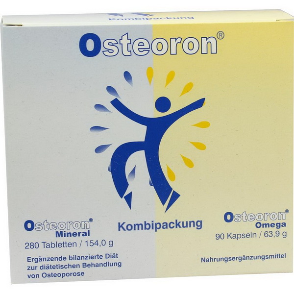Ergänzende bilanzierte Diät zur diätetischen Behandlung von Osteoporose. Osteoron Mineral ist eine ergänzende bilanzierte Diät. Die Verwendung muss unter ärztlicher Aufsicht erfolgen. Aufgrund des erhöhten Bedarfs im Anwendungsgebiet Osteoporose ist der Gehalt an Calcium, Magnesium und Vitamin D in Osteoron Mineral erhöht. Eine hohe Zufuhr von Calcium mit der Nahrung ist im Rahmen einer diätetischen Behandlung der Osteoporose notwendig. Magnesium ist ein wichtiger Bestandteil der Knochensubstanz und relevant für die Knochendichte. Vitamin D fördert die Calciumaufnahme im Darm und die Einlagerung von Calcium in die Knochen. Calcium, Magnesium und Vitamin D sind in Osteoron Mineral in ausgewogener Kombination enthalten.