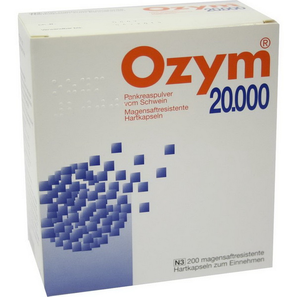 Ozym 20.000 ist ein Präparat zum Ersatz von Verdauungsenzymen bei Verdauungsstörungen infolge ungenügender oder fehlender Funktion der Bauchspeicheldrüse.
