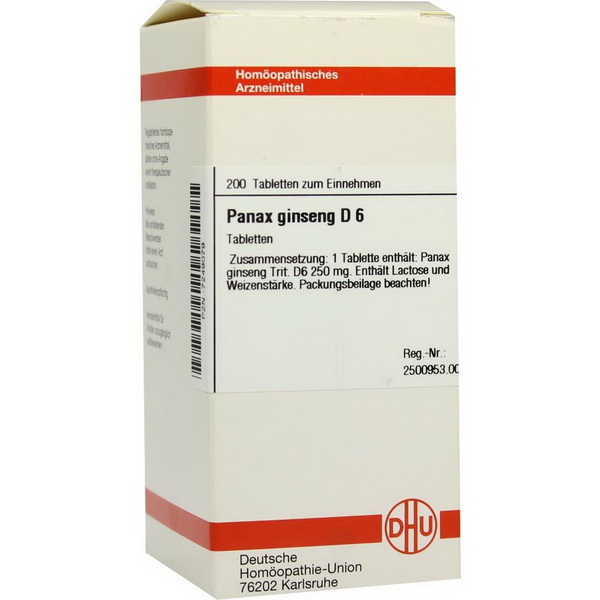 - PANAX GINSENG D 6 Tabl. ist ein registriertes homöopathisches Arzneimittel, daher ohne Angabe einer therapeutischen Indikation.