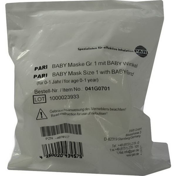 PARI Baby Maske Größe 1 mit Baby Winkel für ca. 0 - 1 Jahre