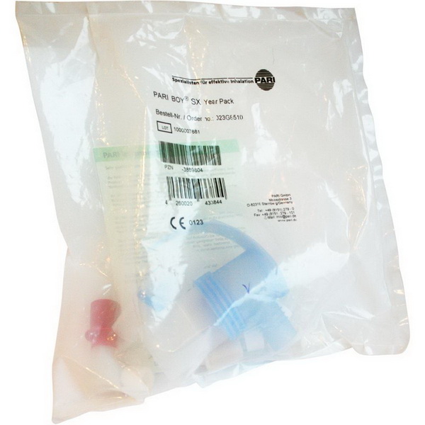 bestehend aus: Filter für PARI BOY® Kompressoren (ab Type 038), PARI LC SPRINT® Vernebler (Düsenaufsatz blau), Düsenaufsatz rot, Mundstück universell und Anschlussschlauch (1,2m)