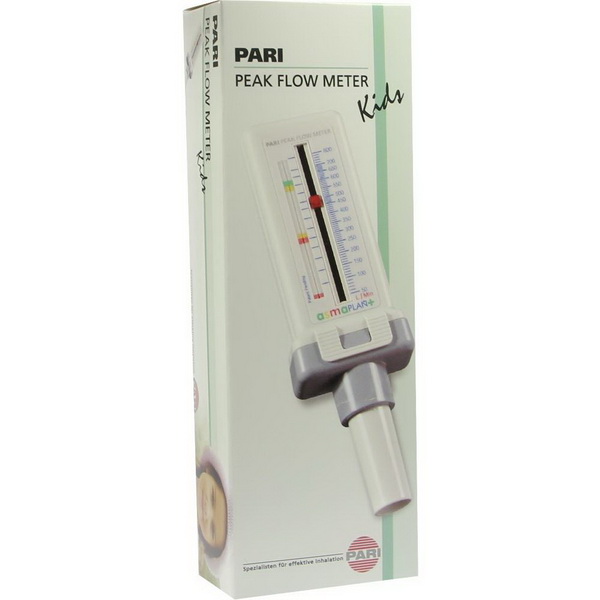 Das PARI PEAK FLOW METER dient der Messung des Spitzenflusses (engl.: peak flow), also der Spitzengeschwindigkeit der ausgeatmeten Luft und damit der Ausatemkraft der Lunge.