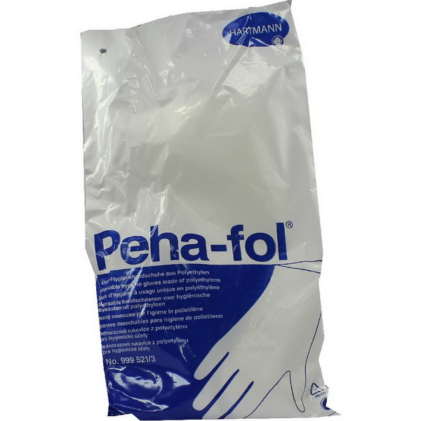 Einmal-Handschuhe aus dünner und weicher Polyethylenfolie, strapazierfähig und reißfest durch fest und glatt verschweißte Ränder; links und rechts zu tragen; in Damen- und Herrengröße.