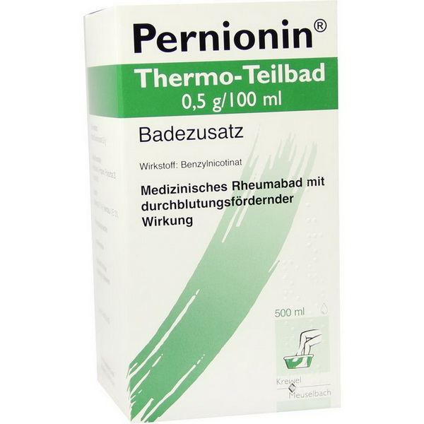 Pernionin® Thermo-Teilbad wird angewendet zur unterstützenden Behandlung bei Erkrankungen des rheumatischen Formenkreises, zur vorübergehenden Steigerung der peripheren (oberflächlichen) Durchblutung, bei Erfrierungsschäden 1. Grades (Frostbeulen).