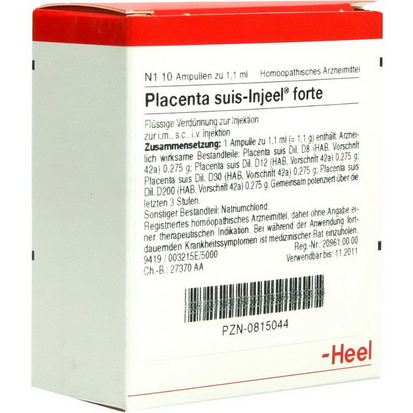 1 Ampulle zu 1,1 ml (= 1,1 g) enthält: Wirkstoffe: Placenta