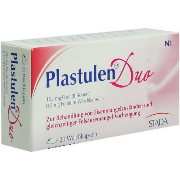 Plastulen® Duo 102 mg Eisen(II)- Ionen/0,5 mg Folsäure Weichkapseln