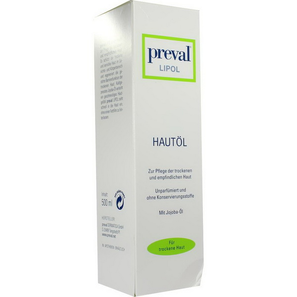 preval LIPOL ist ein Hautöl zur Pflege der trockenen und empfindlichen Haut. Es schützt die trockene und sensible Haut im Gesichts und Körperbereich und regeneriert die gestörte Barrierefunktion der trockenen Haut. Kaltgepresstes Jojoba-Öl verleiht ein geschmeidiges Hautgefühl. preval LIPOL zieht schnell in die Haut ein, ohne einen Fettfilm zu hinterlassen.