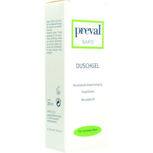 preval SAPO ist ein Duschgel zur pflegenden Reinigung der trockenen und empfindlichen Haut. Wertvolles Jojoba- Öl sorgt gleichzeitig für eine ausreichende Rückfettung, sodass die natürliche Barrierefunktion der Haut erhalten wird. Frei von Duft- und Farbstoffen ist dieses Duschgel höchst verträglich.