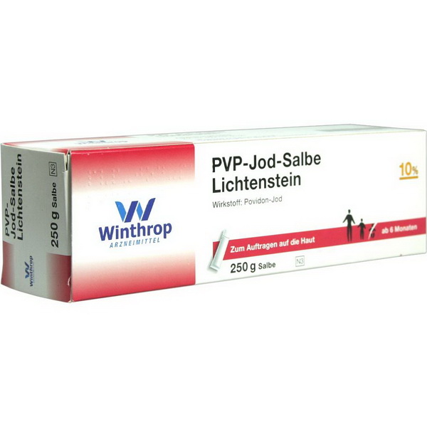 Sie zeigt das Vorhandensein von verfügbarem Iod und damit die Wirksamkeit an. Bei Nachlassen der Braunfärbung ist nachzudosieren, wobei eine vollständige Belegung der betroffenen Areale notwendig ist, da die Salbe eine ausschließlich lokale antiseptische Wirkung aufweist.