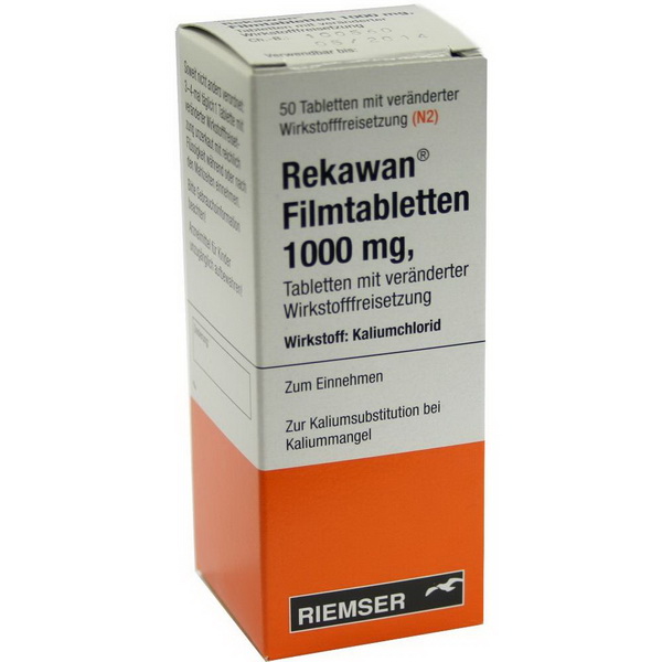 3 – 4-mal täglich 1 Tablette mit veränderter Wirkstofffreisetzung (= 3 – 4-mal 13,4 mmol Kalium) nach den Mahlzeiten und nur auf vollen Magen einnehmen. Rekawan® Filmtabletten 1000 mg sind unzerkaut mit reichlich Flüssigkeit einzunehmen. Die Einnahme sollte nicht im Liegen erfolgen. Die Dauer der Anwendung richtet sich nach dem Krankheitsbild und wird vom Arzt bestimmt.
