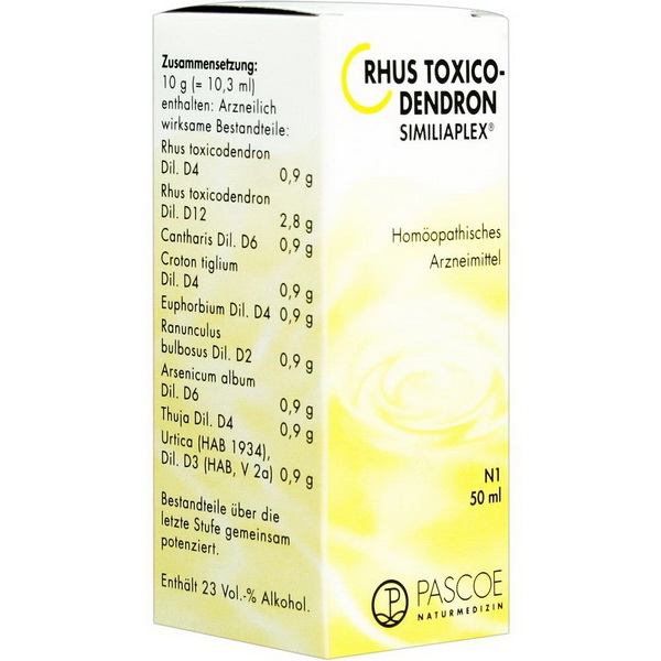 RHUS TOXICODENDRON Similiaplex® ist ein registriertes homöopathisches Arzneimittel, daher ohne Angabe einer therapeutischen Indikation. Bei während der Anwendung fortdauernden Krankheitssymptomen bitte medizinischen Rat einholen.