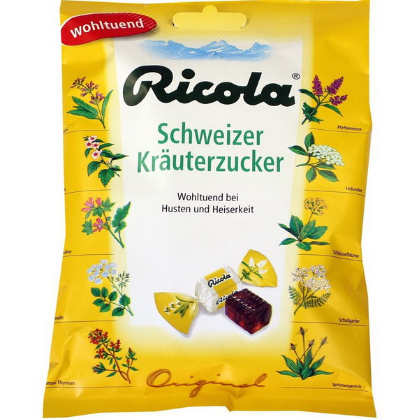 Ricola Schweizer Kräuterzucker enthält die Kraft der 13-Kräuter. Der Klassiker unter den Ricola Produkten zeichnet sich durch sein kantiges Aussehen und seinen feinen Kräutergeschmack aus. Seit 1940 mischt Ricola die 13 wertvollen Heilkräuter für diese Kräuterspezialität aus der Schweiz nach demselben Rezept: Die Mischung aus Bibernelle, Holunderblüten, Ehrenpreis, Pfefferminze, Salbei, Eibisch, Thymian, Frauenmantel, Andorn, Spitzwegerich, Schlüsselblume, Schafgarbe und Malve schätzen Konsumentinnen und Konsumenten bei Erkältungen, Husten und Heiserkeit.