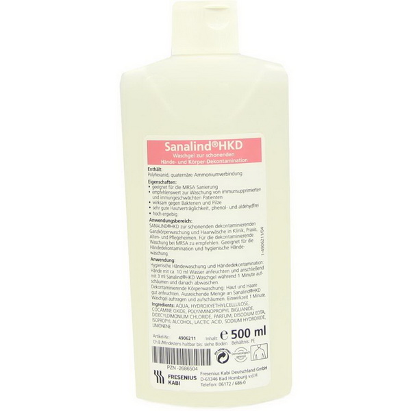 Sanalind® HKD ist ein neues, gebrauchsfertiges Waschgel. Es reinigt nicht nur Haut und Haare mild und gründlich, sondern erfüllt auch besondere Hygieneanforderungen durch seine gute dekontaminierende Wirkung.