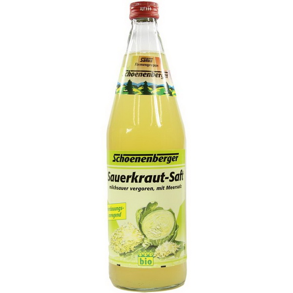 Schoenenberger® Sauerkraut-Saft wird aus milchsauer vergorenem Weißkohl hergestellt und enthält die natürliche Milchsäure des Sauerkrauts in angenehm trinkbarer Form.