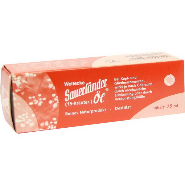 Weltecke Sauerländer (15-Kräuter-) Öl ist eine Mischung aus verschiedenen ätherischen Ölen, die besonders gut aufeinander abgestimmt sind.