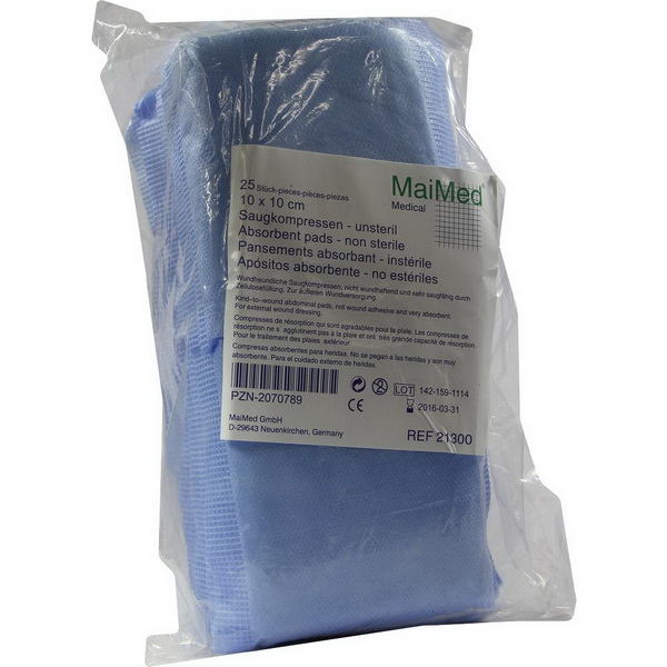Gebrauchsfertige Saugkompressen aus Vliesstoff mit Zellulosekern, unsteril. Sterilisierbar -A 121°C