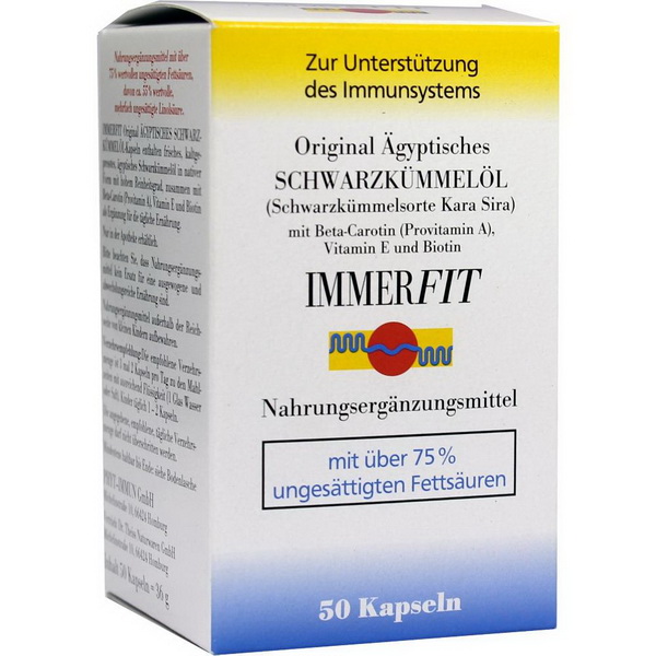 IMMERFIT Orginal Ägyptisches SCHWARZKÜMMELÖL-Kapseln enthalten frisches, kaltgepresstes, ägyptisches Schwarzhümmelöl in nativer Form mit hohem Reinheitsgrad, zusammen mit Beta-Carotin (Provitamin A), Vitamin E und Biotin als Ergänzung für die tägliche Ernährung.