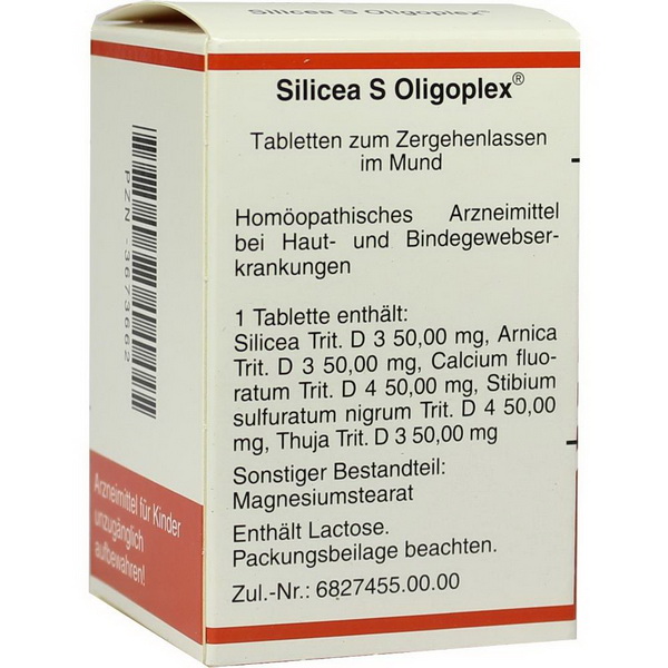 Dieses Arzneimittel enthält Lactose. Bitte nehmen Sie Silicea S Oligoplex® daher erst nach Rücksprache mit Ihrem Arzt ein, wenn Ihnen bekannt ist, dass Sie unter einer Zuckerunverträglichkeit leiden. Geben Sie Silicea S Oligoplex® Kindern von 6 bis 12 Jahren nur nach Rücksprache mit dem Arzt, da bisher keine ausreichenden Erfahrungen für eine allgemeine Empfehlung für diese Altersgruppe vorliegen.
