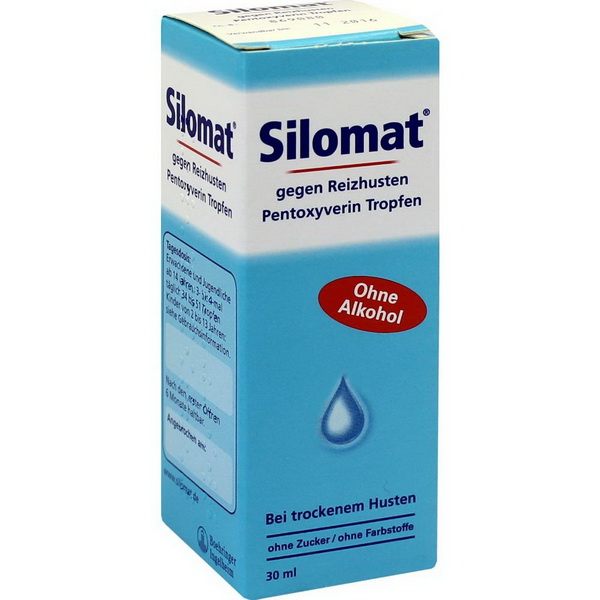 SILOMAT gegen Reizhusten Pentoxyverin Tropfen sind ein Arzneimittel zur kurzzeitigen Anwendung bei Reizhusten (Antitussivum). Die Anwendungsdauer darf in der Regel 2 Wochen nicht überschreiten.