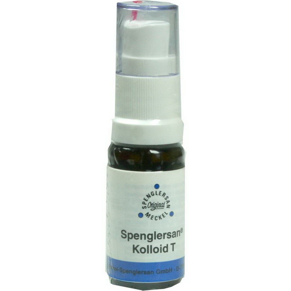 Was Spenglersan Kolloid T in 10 g enthält: Die Wirkstoffe sind: Antigene aus Mycobacterium tuberculosis Spengler ad usum externum Dil. D9 (HAB, Vorschrift 58a) 1 g, Antitoxine aus Mycobacterium tuberculosis Spengler ad usum externum Dil. D9 (HAB, Vorschrift 58b) 1 g, Antigene aus Mycobacterium bovis Spengler ad usum externum Dil. D9 (HAB, Vorschrift 58a) 2 g, Antitoxine aus Mycobacterium bovis Spengler ad usum externum Dil. D9 (HAB, Vorschrift 58b) 2 g, Antigene aus Streptococcus pneumoniae subsp. pneumoniae Spengler ad usum externum Dil. D9 (HAB, Vorschrift 58a) 1 g, Antitoxine aus Streptococcus pneumoniae subsp. pneumoniae Spengler ad usum externum Dil. D9 (HAB, Vorschrift 58b) 1 g, Antigene aus Neisseria mucosa Spengler ad usum externum Dil. D9 (HAB, Vorschrift 58a) 1 g, Antitoxine aus Neisseria mucosa Spengler ad usum externum Dil. D9 (HAB, Vorschrift 58b) 1 g, gemeinsam potenziert über 8 Stufen. Der sonstige Bestandteil ist: Thymol, Salzsäure 25% (m/V)