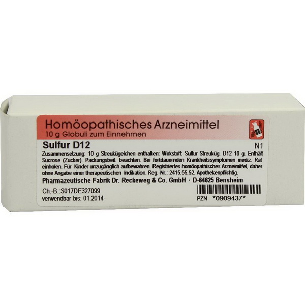 10 g Streukügelchen Sulfur D12 enthalten: Wirkstoff: Streukügelchen Sulfur D12 10 g.