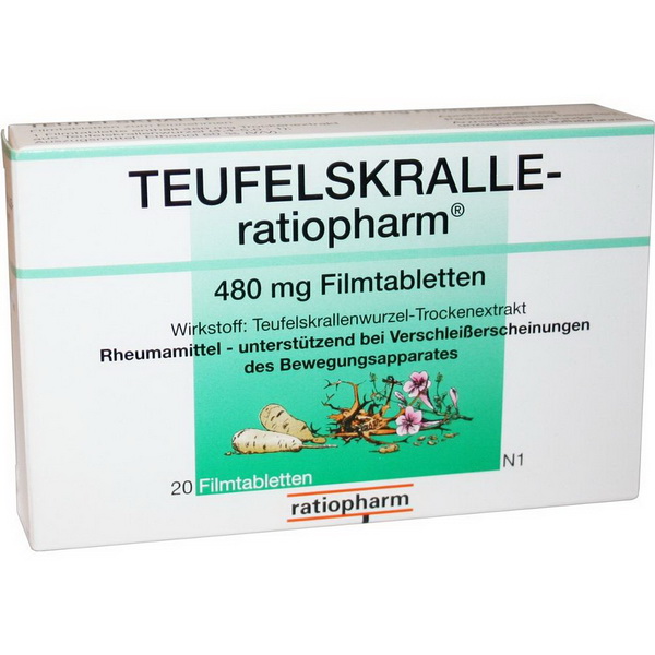 Teufelskralle-ratiopharm® ist ein pflanzliches Arzneimittel bei Erkrankungen des Bewegungs- und Stützapparates. Teufelskralle-ratiopharm® wird angewendet zur unterstützenden Behandlung bei Verschleißerscheinungen des Bewegungsapparates.