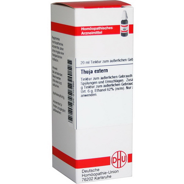 Arzneilich wirksamer Bestandteil: Thuja Urtinktur 6 g.