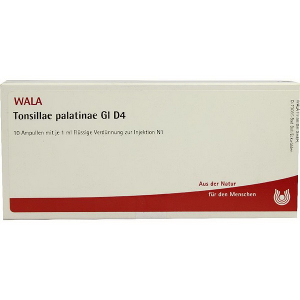 Flüssige Verdünnung zur Injektion: 1 ml enthält: Tonsillae palatinae bovis Gl Dil. D.. 1 ml (HAB, Vs. 41a)