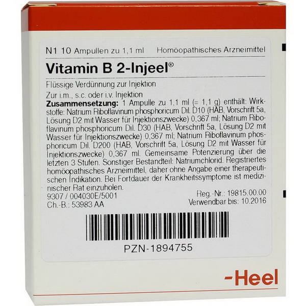 VITAMIN B 2 INJ HOM ALL 10 ST
