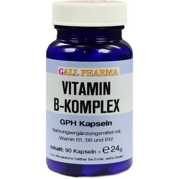 Vitamin B-Komplex GPH Kapseln enthalten 0,46 mg Vitamin B1 (Thiaminhydrochlorid), 0,66 mg Vitamin B6 (Pyridoxinhydrochlorid) und 1 µg Vitamin B12 (Cyancobalamin) in einer Hartgelatinekapsel. Diese wasserlöslichen Vitamine des B-Komplexes ergänzen einander in ihrer Funktion. Ihre gleichzeitige Einnahme ist daher wirkungsvoller. Da diese wasserlöslichen Vitamine im Körper nicht nennenswert gespeichert werden, ist eine ständige Zufuhr sinnvoll. Die B-Vitamine spielen eine wichtige Rolle für das Nervensystem, die Energiebereitstellung und die Konzentrationsfähigkeit. Durch ihre Kombination haben sie einen regulierenden Einfluss auf den Kohlenhydrat-, Eiweiß- und Energiestoffwechsel. Sie wirken sich positiv auf die (sportliche) Leistungsfähigkeit, das körperliche Wohlbefinden, Konzentrationsfähigkeit und Ausgeglichenheit aus.