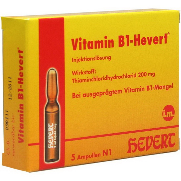 Zur anfänglichen Vitamin B1-Therapie werden täglich eine halbe bis 1 Ampulle 'Vitamin B1-Hevert' (entsprechend 100-200 mg Thiaminchloridhydrochlorid) vorsichtig und langsam tief intramuskulär injiziert.