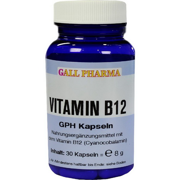 Vitamin B12 GPH Kapseln enthalten 3,0 µg Cyancobalamin in einer Hartgelatinekapsel. Vitamin B12 wirkt bei verschiedenen Reaktionen im Stoffwechsel mit. Vitamin B12 ist unentbehrlich für eine normale Reifung von Erythrozyten (rote Blutkörperchen). Die Mangelerscheinung, die sog. perniziöse Anämie, beruht nicht auf einem Mangel an Vitamin B12 in der Nahrung, sondern am Fehlen eines spezifischen Faktors im Magensaft. Dieser bindet nämlich das Vitamin B12 und transportiert es in die Darmzellen. Bereits eine geringere Unterversorgung an Vitamin B12 führt zu Befindlichkeitsstörungen wie allgemeine Schwäche, Müdigkeit und Schlaffheit.
