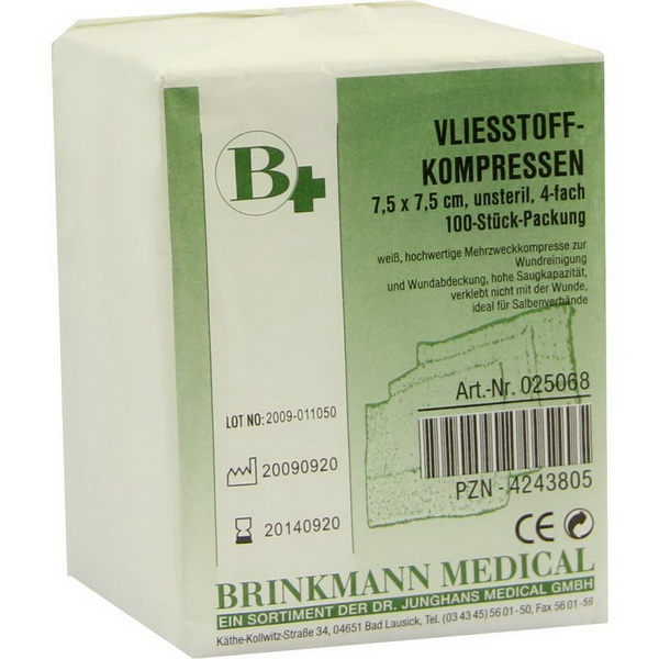 Allgemeine Informationen zu Brinkmann Vliesstoffkompresse unsteril 7,5 x 7,5 cm 4-fach