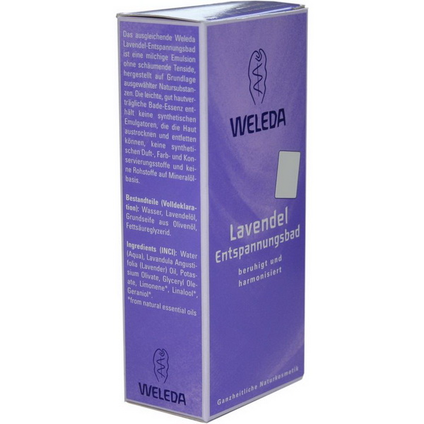 Eintauchen in die Bade-Essenz Lavendel, heißt eintauchen in ein Meer von blau-violetten Lavendelfeldern Südfrankreichs. Der Duft des echten ätherischen Lavendelöls, der kostbarste Bestandteil dieser Pflanze, lässt Ihren Körper völlig entspannen und beruhigt Ihre Sinne. Diese ausgleichende Wirkung fördert einen gesunden Schlaf und balanciert Ihr Inneres nach einem stresserfüllten Tag aus. Aufgrund dieser Eigenschaften wurde Lavendel zur Heilpflanze des Jahres 2008 gekürt. Die Bade-Essenz enthält ausgesuchte pflanzliche Rohstoffen und keine schäumende Tenside oder synthetische Emulgatoren, die die Haut austrocknen könnten. Sie ist frei von synthetischen Duft-, Farb- und Konservierungsstoffen und Rohstoffen auf Mineralölbasis. Die sehr gute Hautverträglichkeit ist dermatologisch bestätigt.